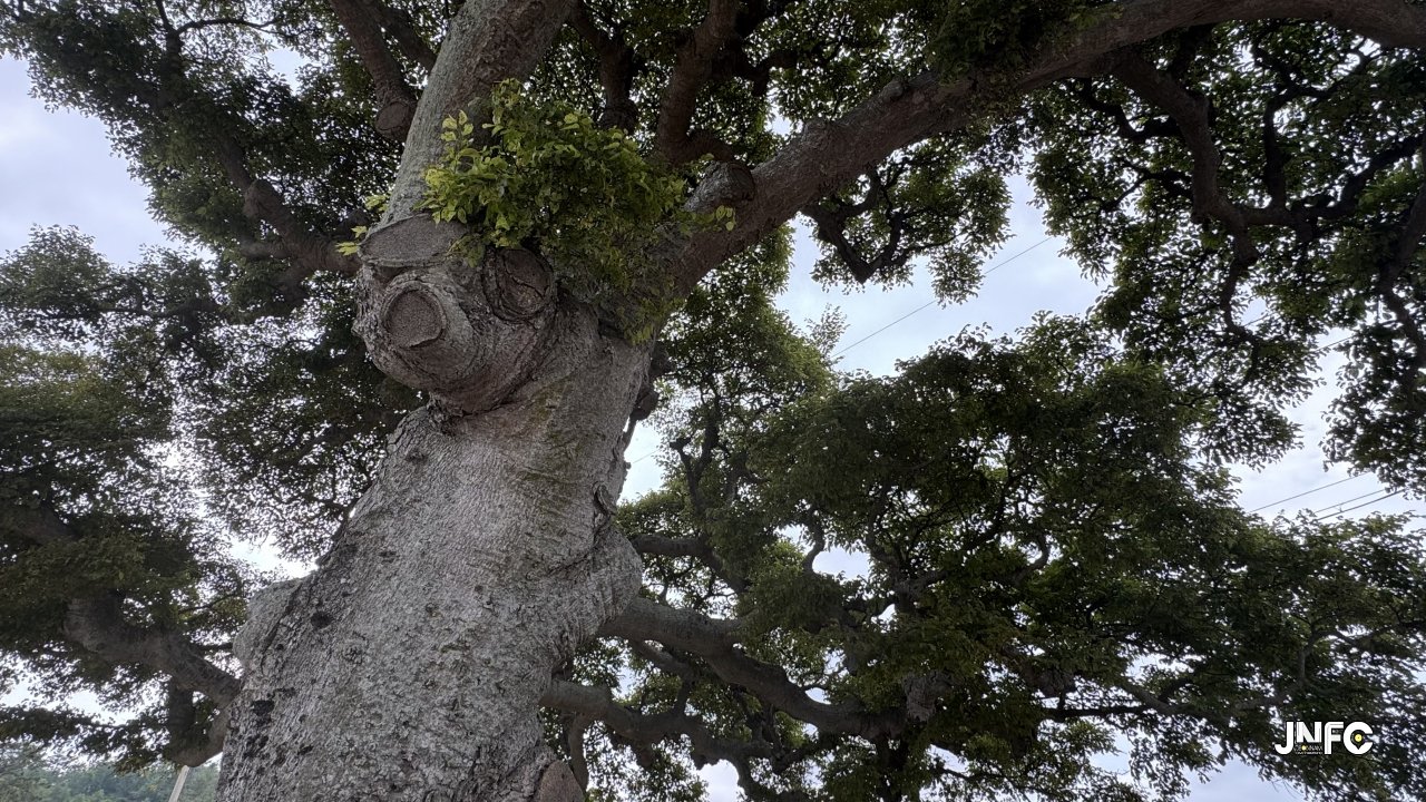 시골길 도로 코너에 있는 수령 200년의 팽나무이다.