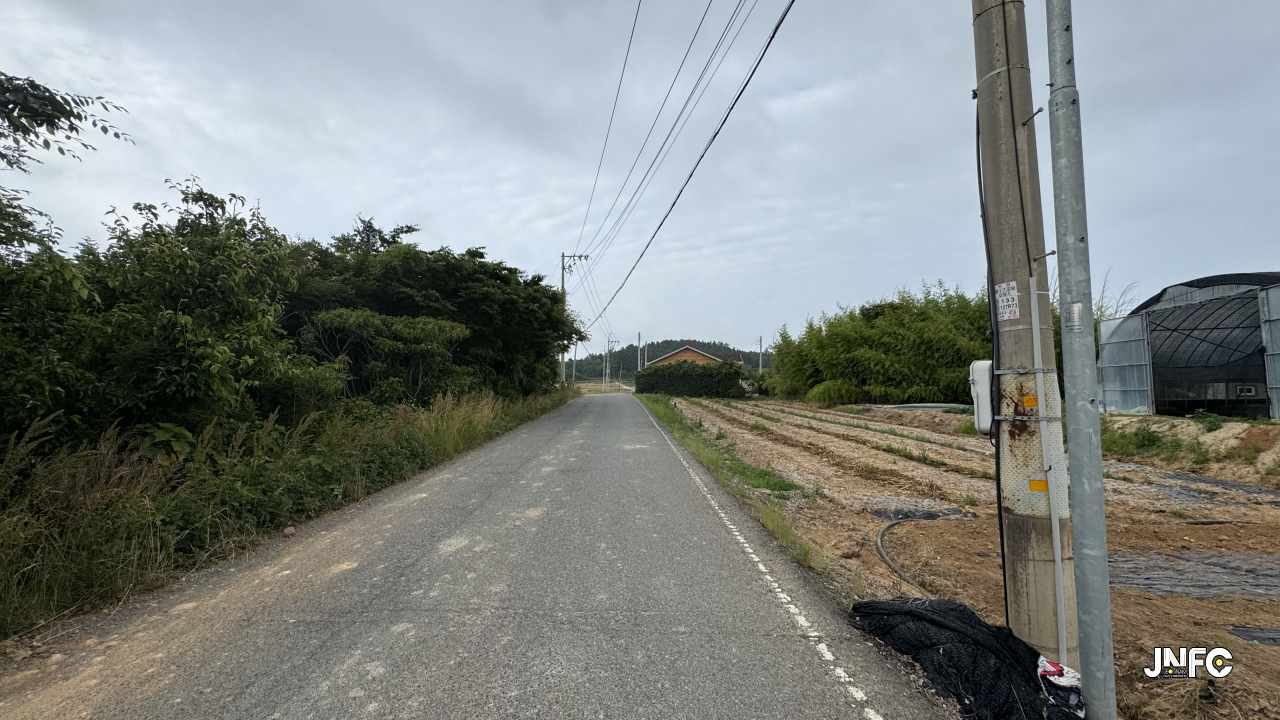 삼거리의 중앙에 위치해 있고, 뒤로는 밭과 저수지가 있고 옆에는 작은 숲과 정자가 있다.