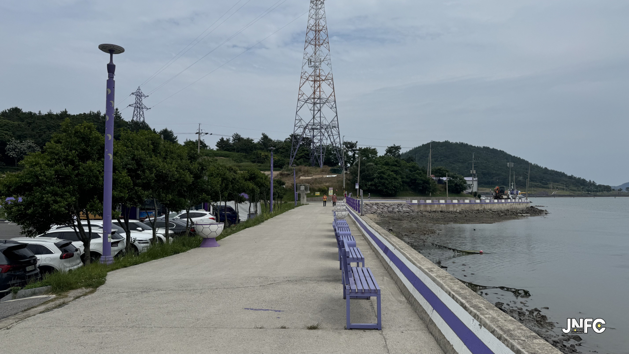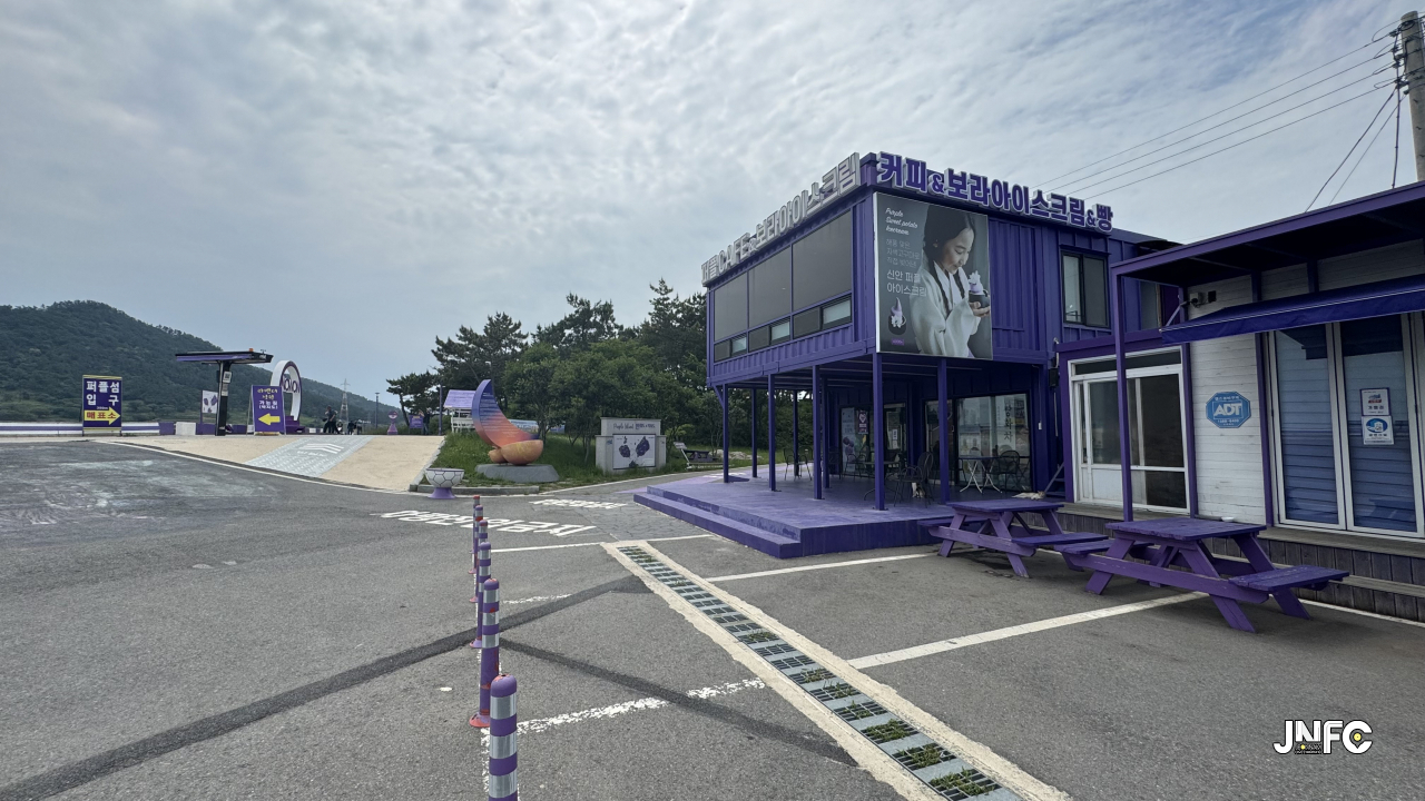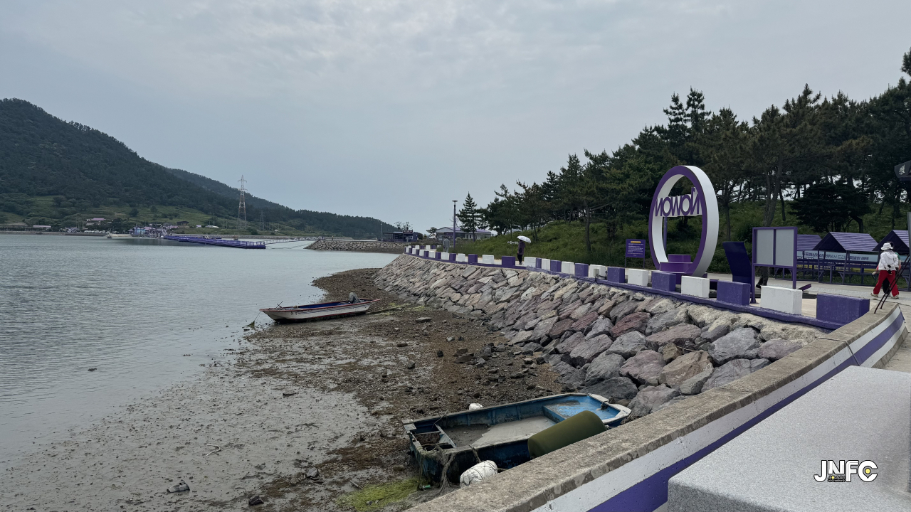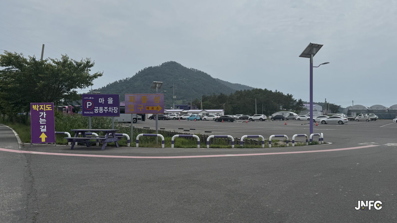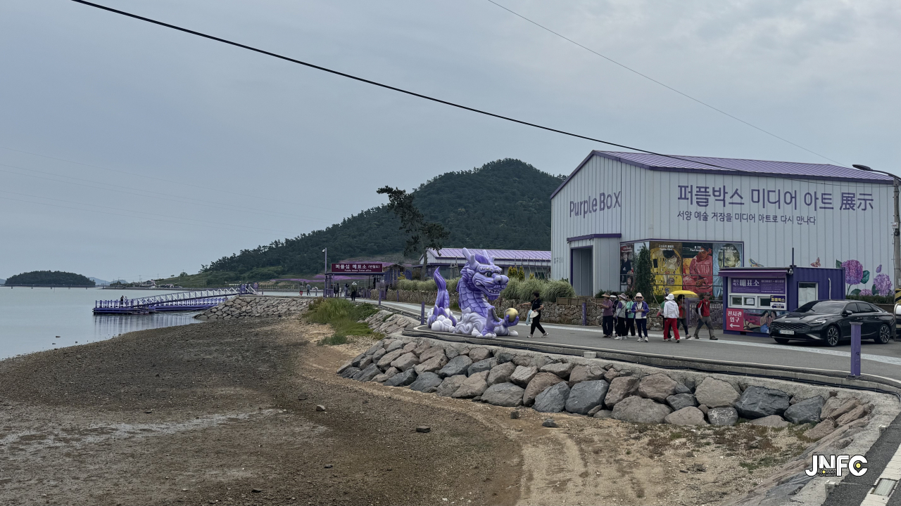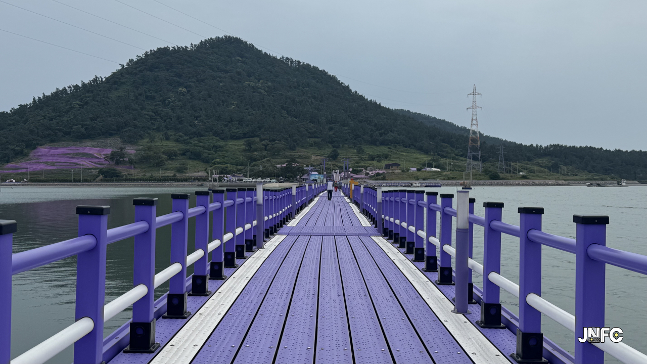 세계적으로 유명해진 섬마을 퍼플섬으로 이동하는 보행교 2개중 1개.