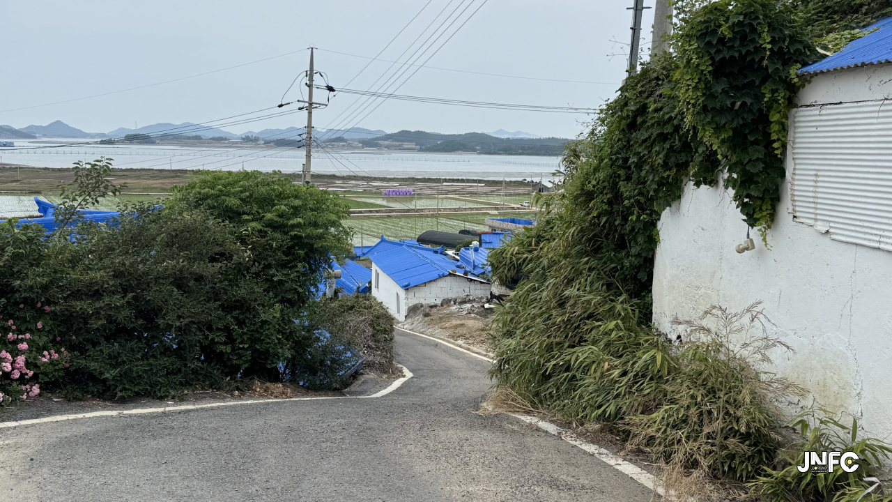 주차장 쪽에 정자가 있어 마을이 내려다 보이고, 그 아래로 양파 밭이 있다. 마을에서는 주로 양파와 마늘을 재배. 마을 바로 앞에는 논이 넓게 펼쳐져 있다.