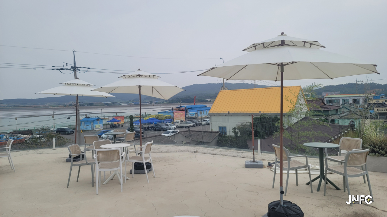 일몰과 밀물 뷰가 좋은 포베오커피가 있다.