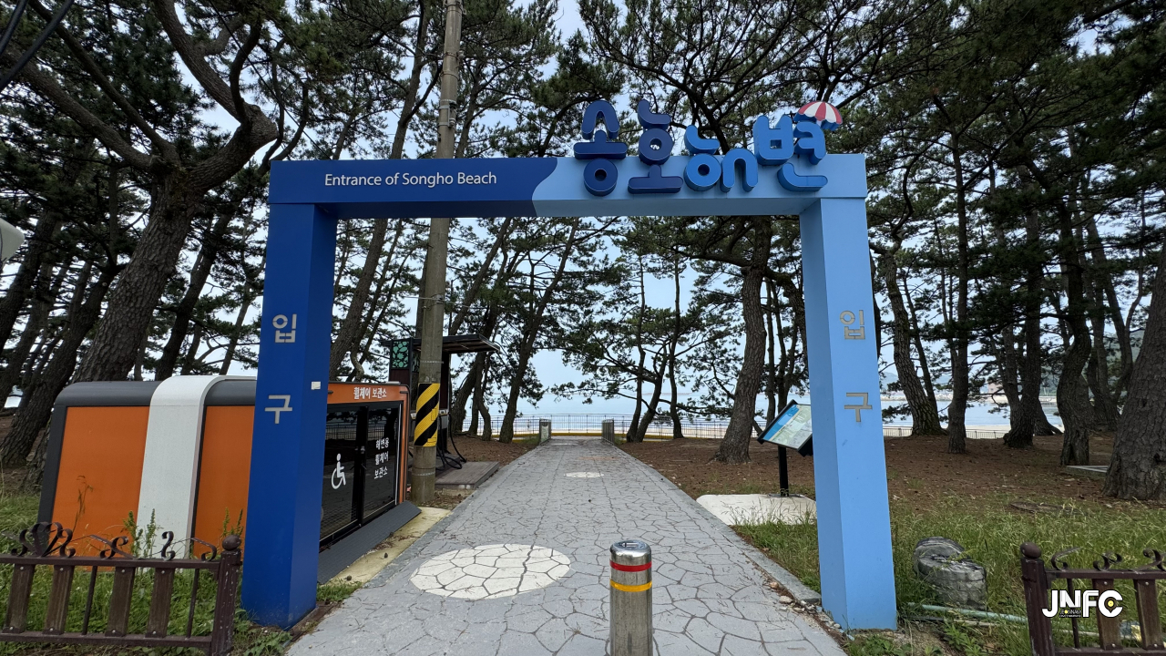 땅끝마을 전망대를 가기 전에 위치한 해남의 대표적인 해수욕장으로 노송(소나무)이 무성하고, 고운 모래와 맑고 잔잔한 바다물결이 호수같다고 하여 땅끝송호해수욕장으로 불리운다. 2km의 백사장으로 해수욕장 기간 중에는 송호 해변축제가 열리고 있으며, 모래조각 전시 등의 이벤트 및 행사가 진행된다. 해남의 대표적인 해수욕장에 걸맞게 민박, 펜션, 유스호스텔, 리조트 등 숙박과 식당, 먹거리 상가들이 위치하고 있다. 노송을 배경으로 한 해수욕장 촬영과 대규모 촬영팀의 숙박, 주차, 인프라를 해결하면서 촬영하기에 적합하다.