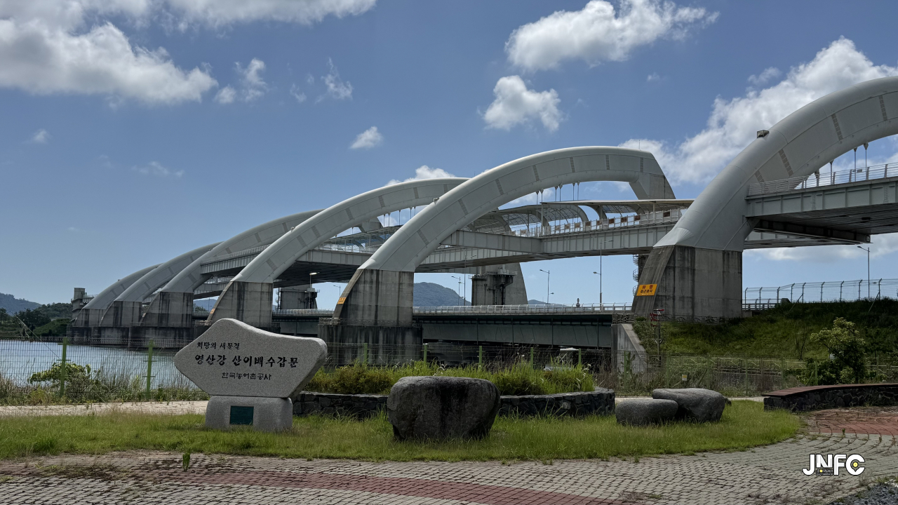 해남군 산이면과 영암군 삼호읍 사이 바다를 막아 간척으로 인해 넓은 농지를 조성하고 수자원 확보를 위해 만들어진 영암금호방조제는 레저와 관광 기능을 더한 복합 시설로 만들었고, 전망대, 소규모 공연이 가능한 광장이 조성되어 있으며, 영암 금호방조제 준공탑이 위치한 공원에는 공중화장실과 농어촌공사 빌딩이 세워져 있다.