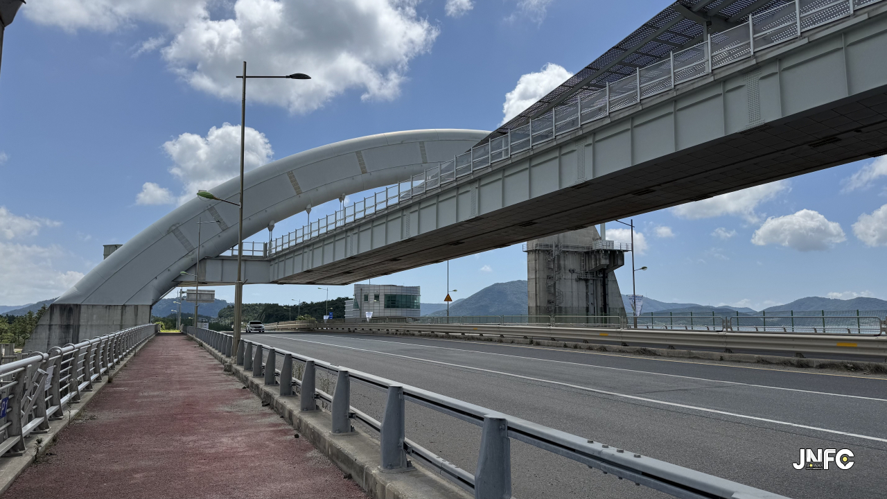총 길이 4.3km의 방조제는 해수어와 담수어를 동시에 낚을 수 있어 낚시꾼들에게 인기있으며, 겨울철 찾아오는 철새들의 모습을 볼 수 있다. 촬영은 구조물의 2층을 활용을 추천하고, 2층에서 조선소를 배경으로 촬영하기에 적합하다.