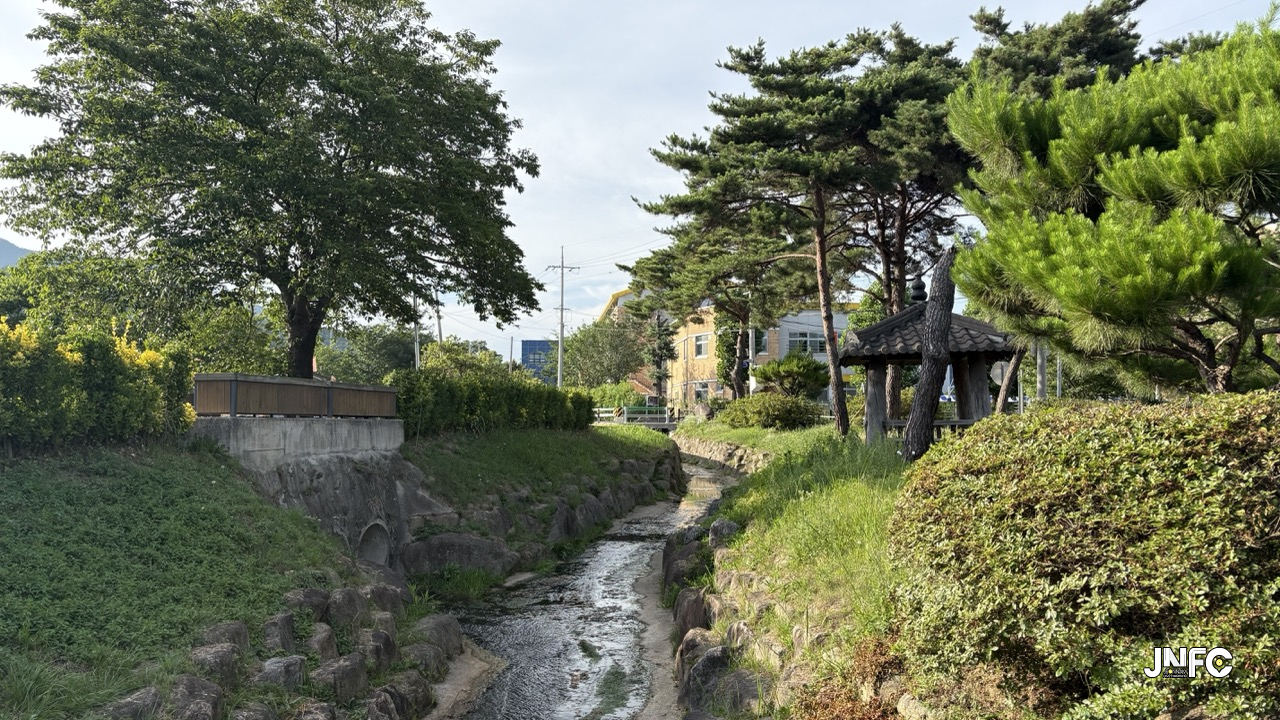 봄에는 제방변에 홍매화가, 여름에는 연꽃과 수국이 만발하며, 9월에는 꽃무릇, 겨울에는 설경이 유명하다