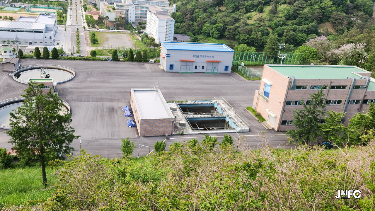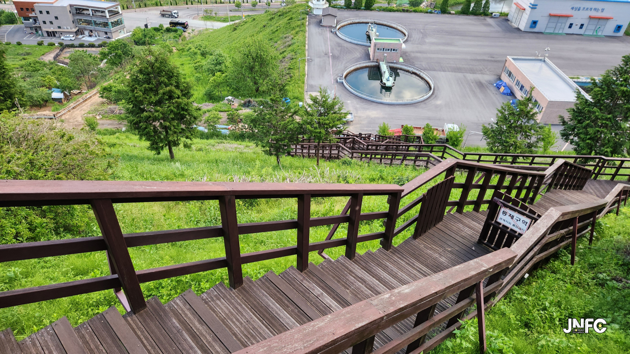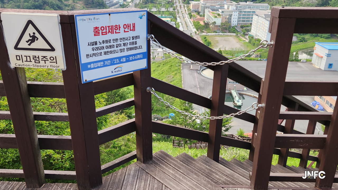 입구쪽 정수장이 있고 위쪽 수자원공사와 조망을 보는 데크가 있다.